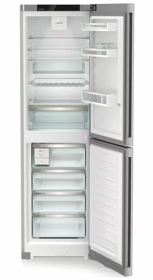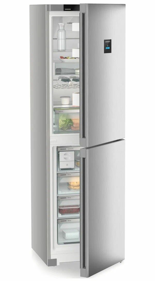 Liebherr CNsfc 573i-22 001 - двухкамерный холодильник с нижней морозильной камерой и элегантной отделкой SteelFinish. Он создан для тех, кто ценит сдержанный дизайн и практичность на каждый день, когда важно быстро найти нужные продукты, поддерживая порядок и чистоту внутри.