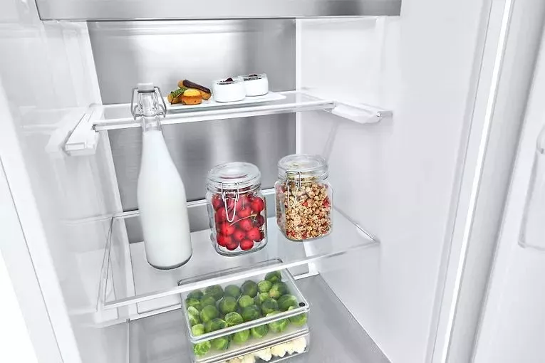 Функция нулевого зазора в наших дверях предотвращает удары выступающих дверей шкафа о стену или кухонную мебель при открывании. Zero Clearance — это специально разработанная петля для наших дверей, которая не требует дополнительного места при открытии двери. Здесь есть два основных преимущества. Во-первых, выдвигать ящики можно только при открытой дверце на 90 градусов. Во-вторых, холодильнику не нужно дополнительное пространство по бокам устройства. Вы сможете более свободно разместить технику на кухне, и вам не придется думать о том, что находится рядом с холодильником. Таким образом, вы сможете планировать свою кухню лучше и более гибко.
