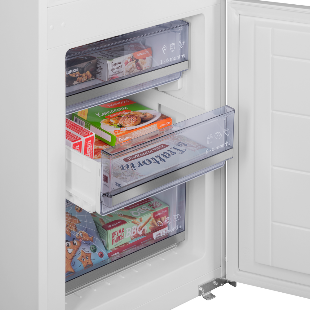 Встраиваемый холодильник с инвертором MAUNFELD MBF177SWGR Inverter — практичное решение для аккуратной интеграции техники в кухонный гарнитур и комфортного повседневного использования. Модель легко вписывается в высокий шкаф и помогает поддерживать порядок внутри камер.