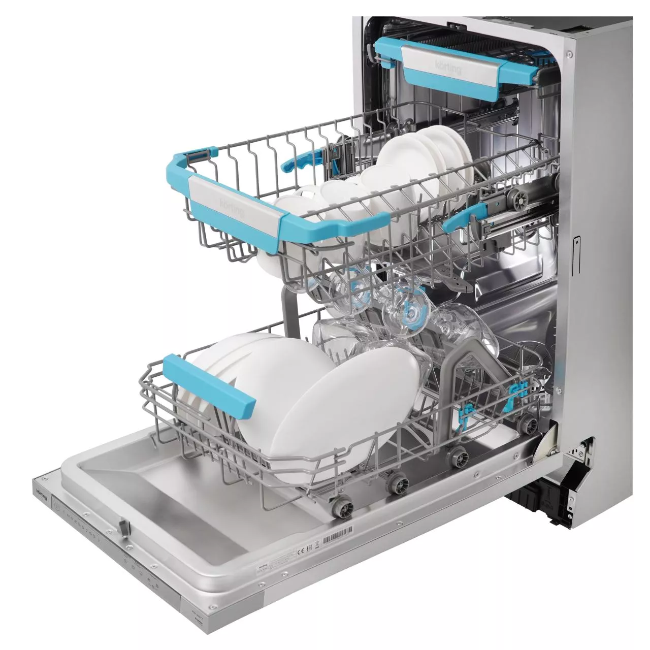 Вместимость до 10 комплектов. Три корзины предоставляют достаточно пространства для размещения различных видов посуды, включая столовые приборы, которые можно удобно разместить на специальной полке C-Shelf. Держатель для бокалов обеспечивает безопасное и надежное размещение.