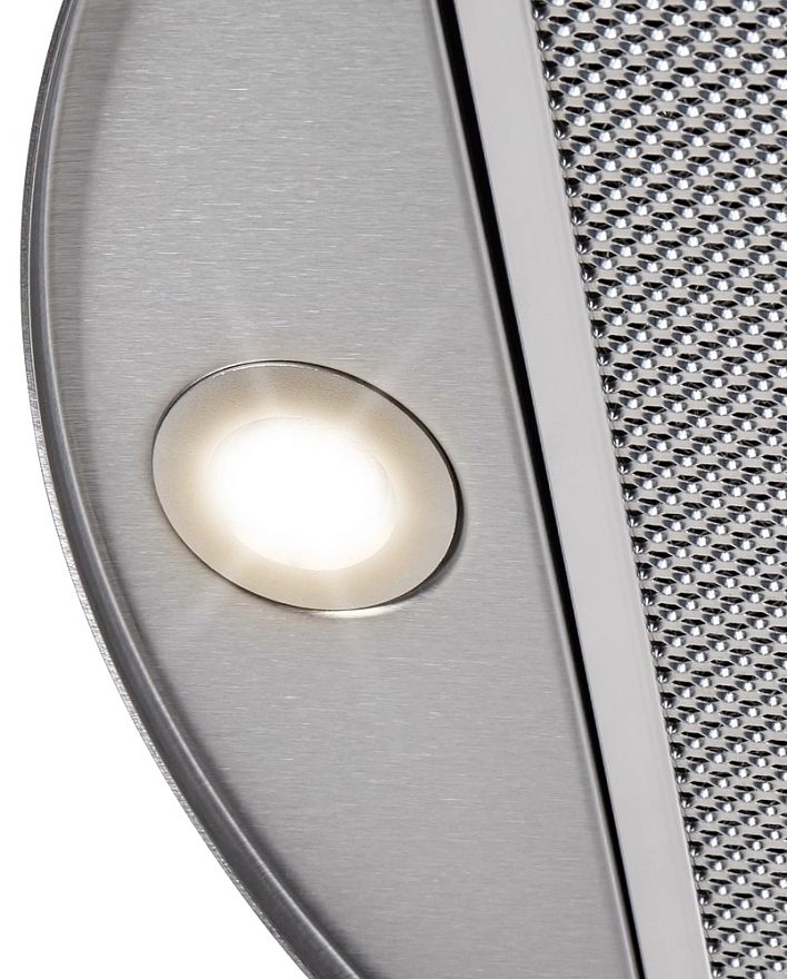 Устройство оснащено сенсорной панелью, что делает его использование максимально комфортным и интуитивно понятным. Три скоростных режима позволяют адаптировать работу вытяжки под интенсивность приготовления пищи. Цифровой дисплей предоставляет четкий контроль над всеми функциями, упрощая взаимодействие с устройством. Одной из ключевых особенностей модели является периметрическая система всасывания P.A.S. , которая гарантирует равномерное и эффективное удаление воздуха. Алюминиевый жировой фильтр легко очищается и защищает устройство от загрязнений, сохраняя его работоспособность. Светодиодное освещение с двумя лампами мощностью по 1 Вт создает комфортную атмосферу и обеспечивает отличную видимость рабочей зоны. Функция таймера позволяет контролировать время работы устройства, экономя электроэнергию. Уровень шума составляет всего 54 дБ, что делает использование вытяжки практически бесшумным.