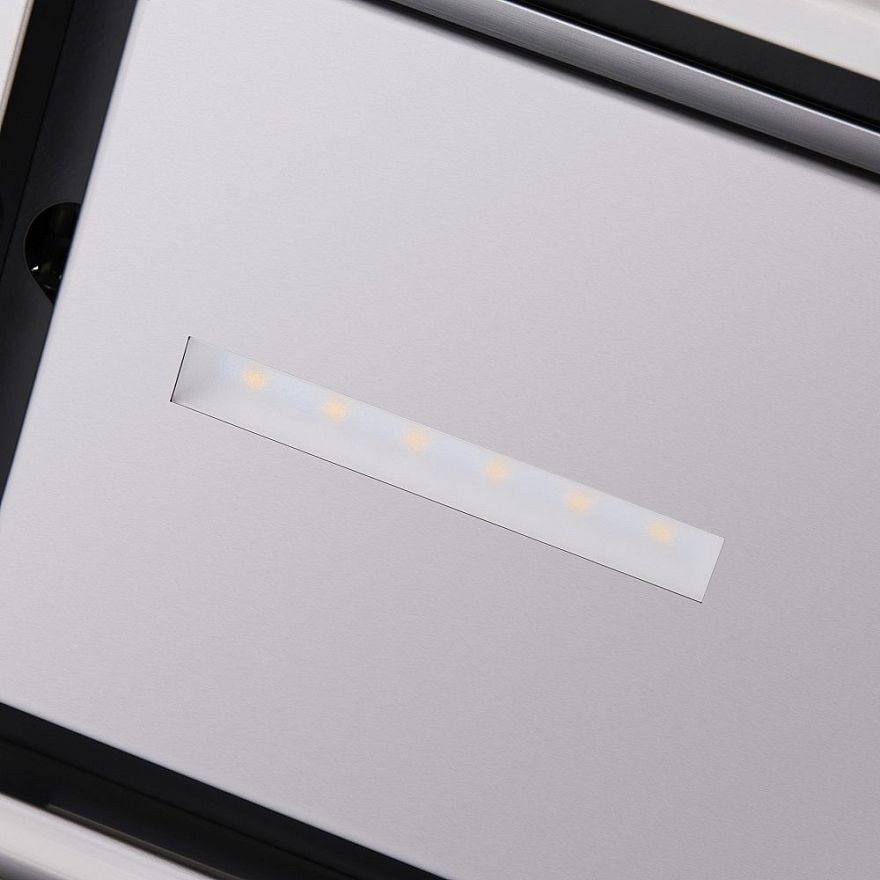Одной из особенностей данной модели является периметрическая система всасывания P.A.S., которая обеспечивает более эффективное и равномерное всасывание воздуха. Световое освещение осуществляется двумя светодиодными лампами мощностью по 3 Вт каждая, что позволяет сэкономить электроэнергию и обеспечивает хорошую видимость при приготовлении пищи.